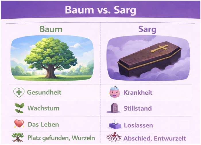„Sarg + Baum“ → Beruflich etwas beenden damit es sich danach gesund weiter entwickeln kann